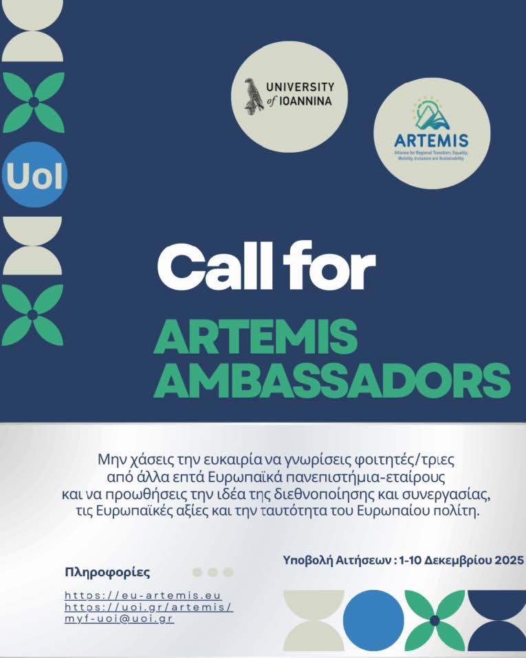 Γενικές ανακοινώσεις Συμπληρωματική περίοδος αιτήσεων διαμονής για την παροχή στέγασης στις Φοιτητικές Κατοικίες του Πανεπιστημίου Ιωαννίνων για το Ακαδημαϊκό έτος 2025-2026 Περισσότερα » 7 Νοεμβρίου 2025 12:29